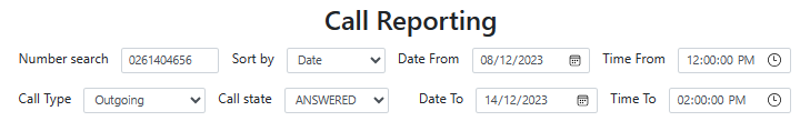 If you generate a call report with the filters specified above, the report will focus on outgoing calls specifically to the number 0261404656. It will only include successfully answered outgoing calls, presenting the data in chronological order based on the call dates. The time frame for this report will be from 12:00 PM on December 8, 2023, to 2:00 PM on December 14, 2023. This customized report provides a detailed overview of the organization's outgoing communication activities to the specified number within the defined date and time range, allowing for a targeted analysis of the relevant call data.