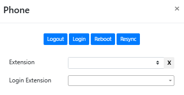 Example: You can select an Extension number and Logout the extension, Login the extension, Reboot the desk phone and Resync the desk phone without physically accessing the device. Note that resyncing a desk phone is required to update phone interface elements after relevant changes have been made to one or more extensions. For example, if a particular extension Name has been changed, both that desk phone and any phone that shows that extension on a line key will need to be resynced to reflect the change. Resyncing phones is safe to do in all circumstances. Rebooting a desk phone should only be done when certain a call in not in progress on the phone.